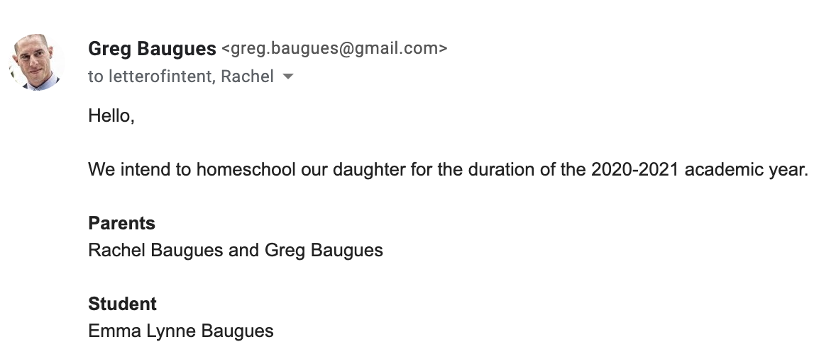Shortly after that town hall, we decided to decouple ourselves from the chaos. We sent our letter of intent to homeschool to the DOE.